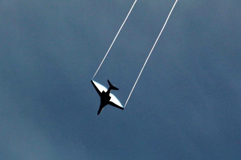 A US-led coalition plane flies above the Syrian town of Kobane/Ayn al-Arab on 23 October, 2014 (AA)