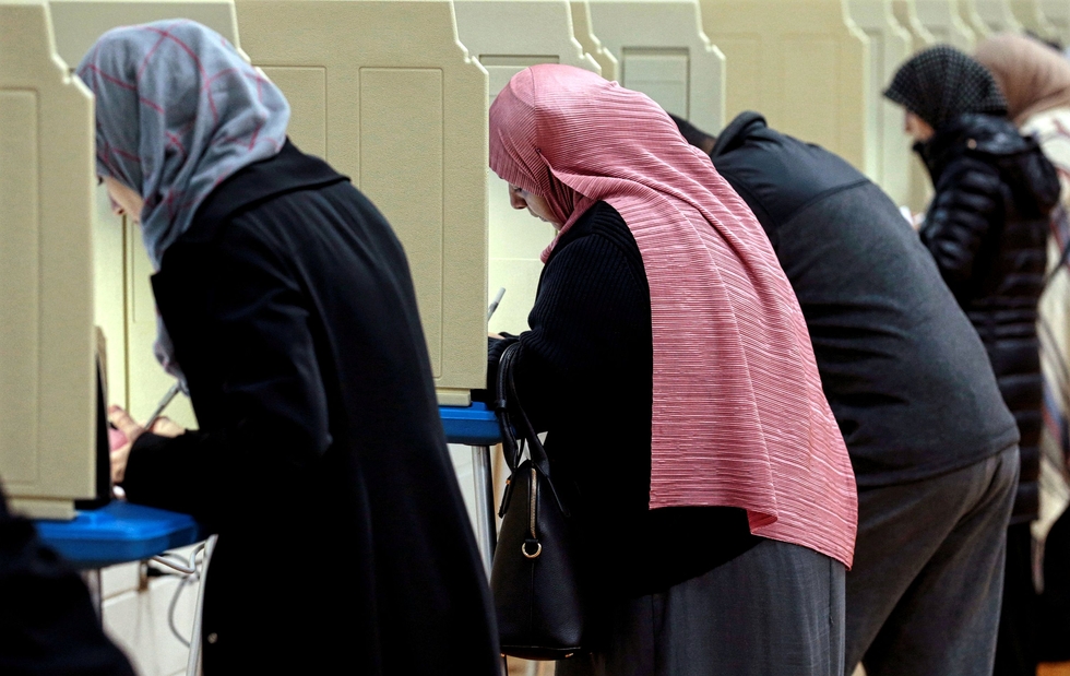 In predominantly Arab American neighbourhoods in Dearborn, Michigan, long lines were forming at polling stations in the afternoon - a rare sight for midterm elections.