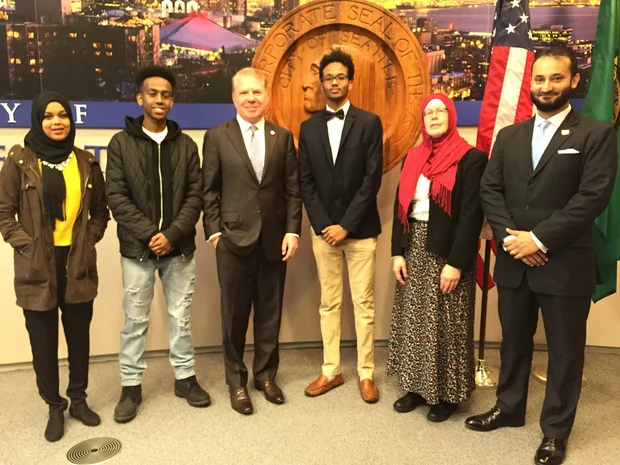 Seattle Mayor Ed Murray is pictured standing with Muslim American activists (CAIR)