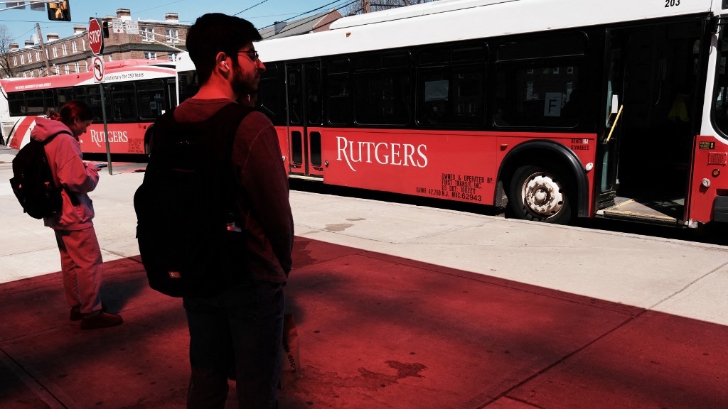 Rutgers students wait for a bus in New Brunswick, New Jersey, on 10 April 2023 (Spencer Platt/AFP)