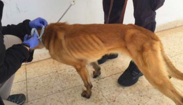 Underweight US sniffer dog in Jordan, April 2018 (US State Department’s Office of Inspector General)