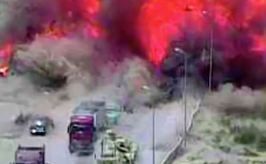 Footage released by the army showed people running from their cars as the tank drove over the vehicle near Arish. However, the bomb detonated seconds later in a huge ball of flame.