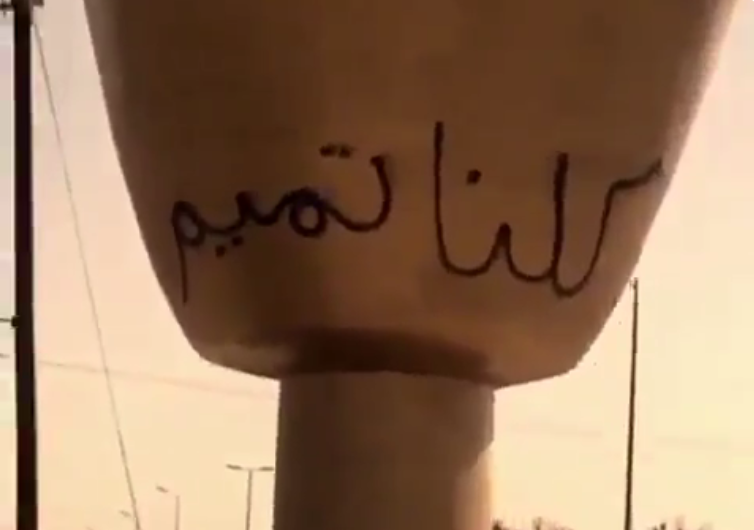 The graffiti read "We are all Tamim" and "Glory to Tamim" referring to Qatar's emir, Sheikh Tamim bin Hamad al-Thani.