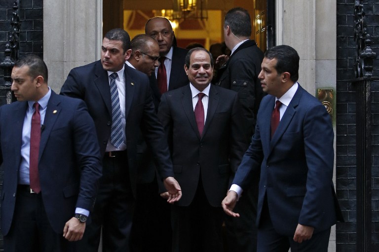 Egyptian President Abdel Fattah al-Sisi leaves 10 Downing Street after a meeting with British Prime Minister David Cameron in London on 5 November (AFP)