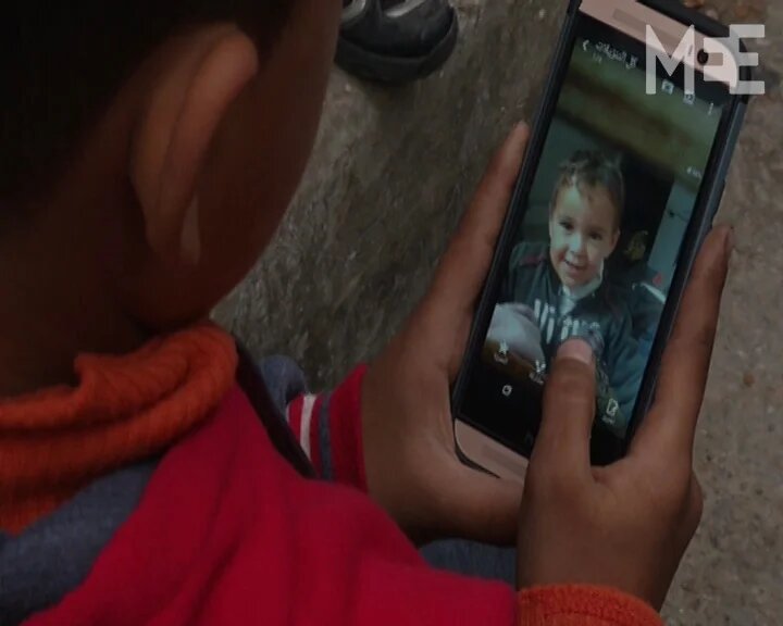 A photo on a smartphone of one of the children killed (MEE/Noor Harazeen)