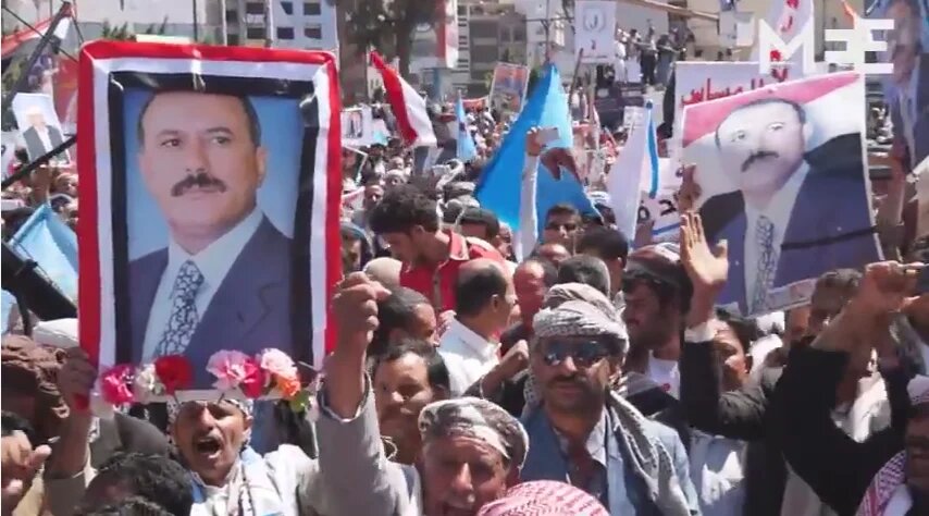 Supporters of ex-president Ali Abdullah Saleh protested in the capital city Sana'a (MEE/Yousef Mawry)