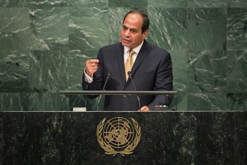 Egyptian President Abdel Fattah al-Sisi addresses the United Nations General Assembly at the UN headquarters on 20 September (AFP)