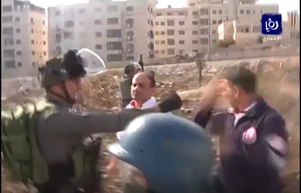 “An Israeli officer attacked our staff directly without any warning,” Diya Housheya, a reporter with Alghad Alarabi TV, said. “He didn't ask us to stay away. At the beginning he beat us directly and then he sprayed pepper gas in our faces.