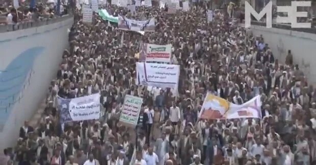 Thousands of Yemenis took to the streets to protest against the Israeli assault on Gaza (MEE/Yousef Mowry)