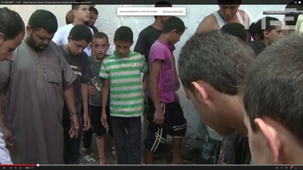 The locals she interviewed all express their support for the executions particularly as they see many of the recent deaths in Gaza as possibly linked to intelligence given to Israel by "traitors" in Gaza.
