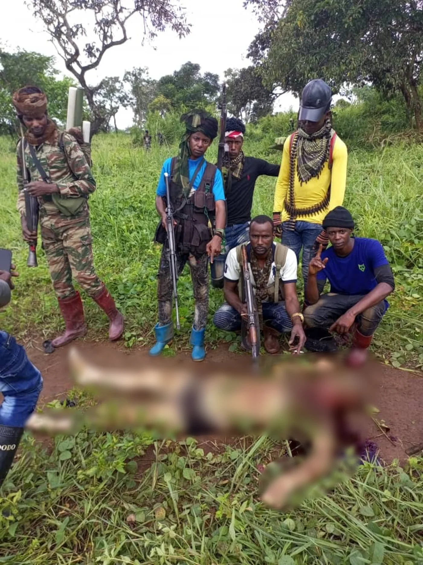 The pictures and videos shared with MEE showed soldiers from the rebel Union for Peace in the Central African Republic (UPC), which is part of the Coalition of Patriots for Change (CPC), standing around the body of a Russian soldier.