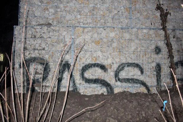 Detractors see the wall very differently. On one corner of the wall the word "Racism" has been spray-painted in German, but it has since been partially covered up with soil.