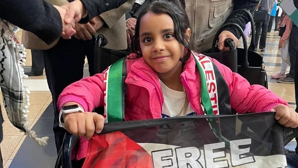 The girl, named Mira, will be joined by two other Palestinian children, 17-year-old Lina and one-year-old Sanad, who were also wounded by Israeli bombs and will receive medical care.