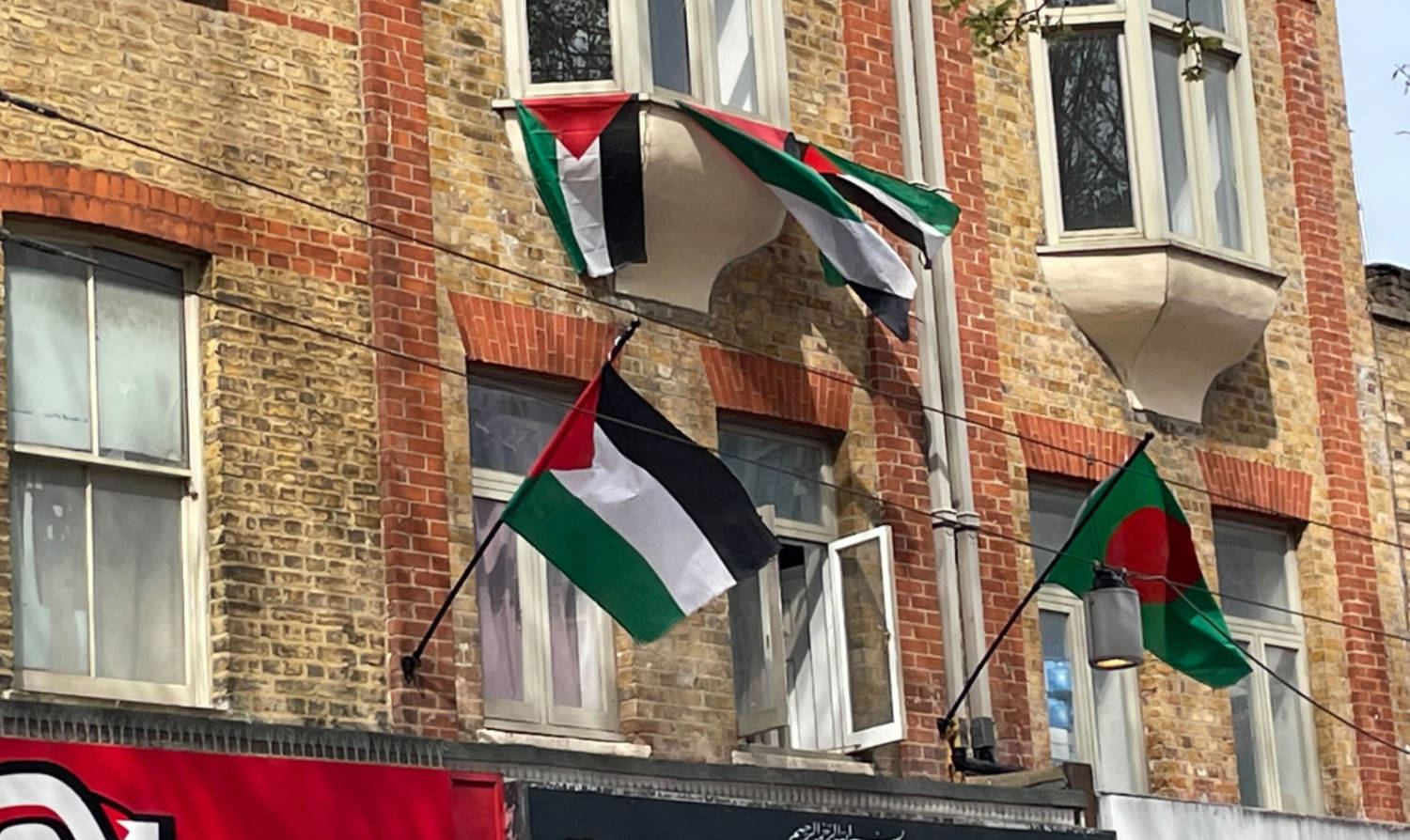 In the borough of Tower Hamlets and other neighbourhoods of east London, residents and activists from the newly formed Palestine Solidarity Network have raised Palestinian flags on lampposts and other street installations, outside shop fronts and in their front windows.