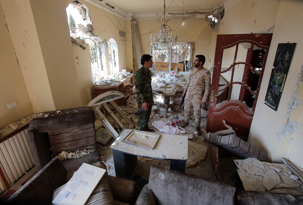 Syrian government forces inspect damage to a house in Daraya in February (AFP)