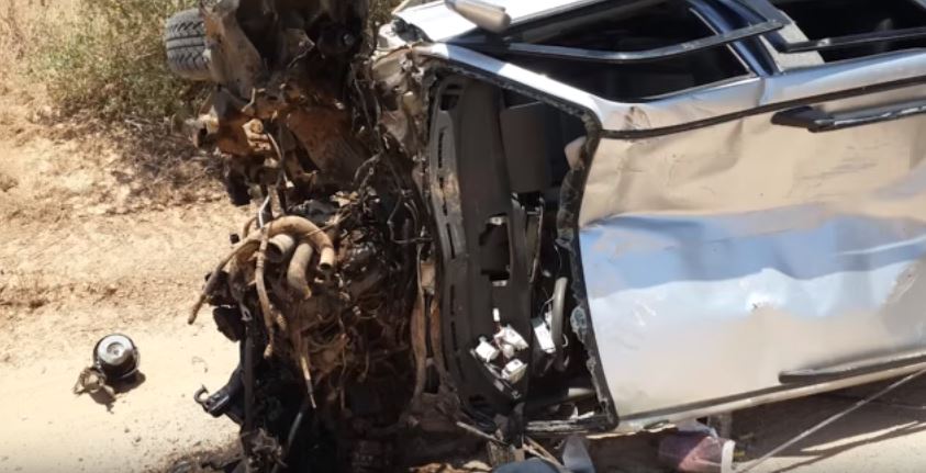 Photo of vehicle from which Bilal Abdul Kareem and others walked away unscathed (YouTube)