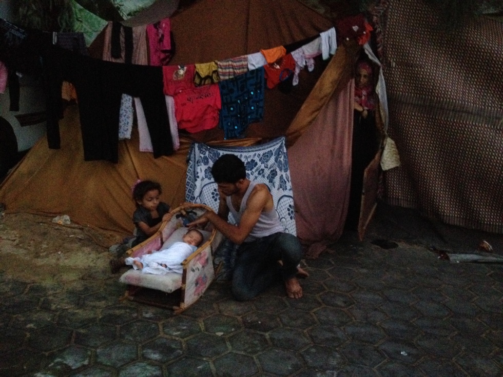 Shanan is one of 450,000 Gazans who fled their homes with nowhere else to go, unlike other war zones where some borders are open, Gaza is locked in, under Israeli siege by land, sea and air and Egypt only opens Rafah border-sporadically- to those with foreign-national passports.