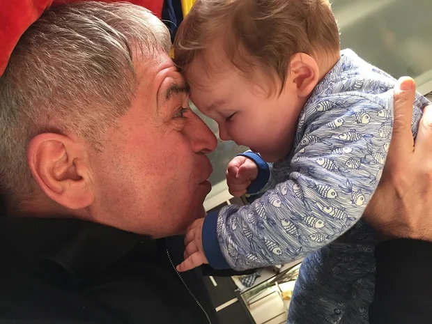 Cumhuriyet journalist Oguz Guven and three-year-old grandson Aren in Istanbul (Demet Guven)