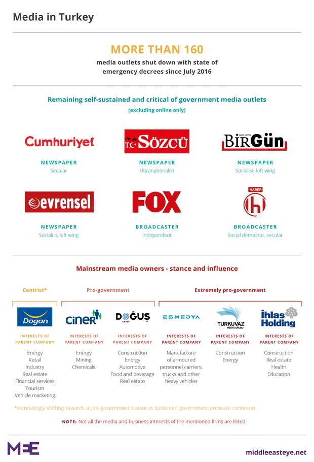 An intense crackdown has resulted in the closure of more than 160 media outlets since a state of emergency was declared on 21 July after the coup attempt, leaving just a handful of independent media players.