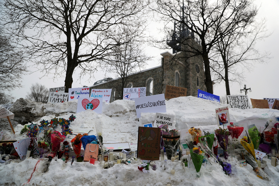 Memorial near site of fatal shooting at Quebec Islamic Cultural Centre (Reuters)