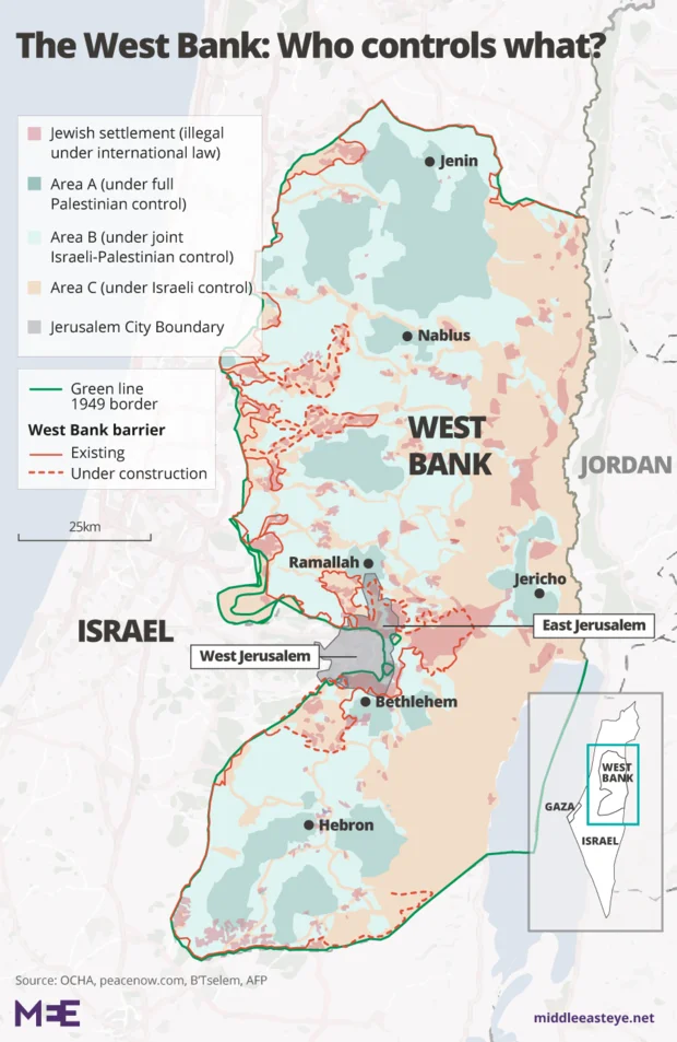 Designated as part of the 1995 Oslo II accords between Israel and the Palestinian Liberation Organisation (PLO), the region comprises the majority of the West Bank’s fertile land, water resources and minerals.It also includes all the Jewish-only settlements, illegal under international law, which the Israeli government has been building and funding since the military occupation of the West Bank and East Jerusalem in 1967.