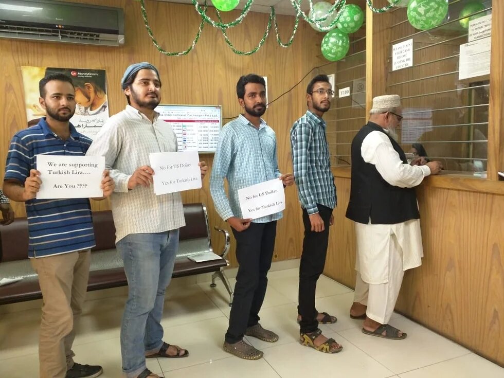 Dozens of Pakistanis have followed a call from civil society actors earlier this month to buy up Turkey’s currency, even as their own country heads towards yet another IMF bailout.