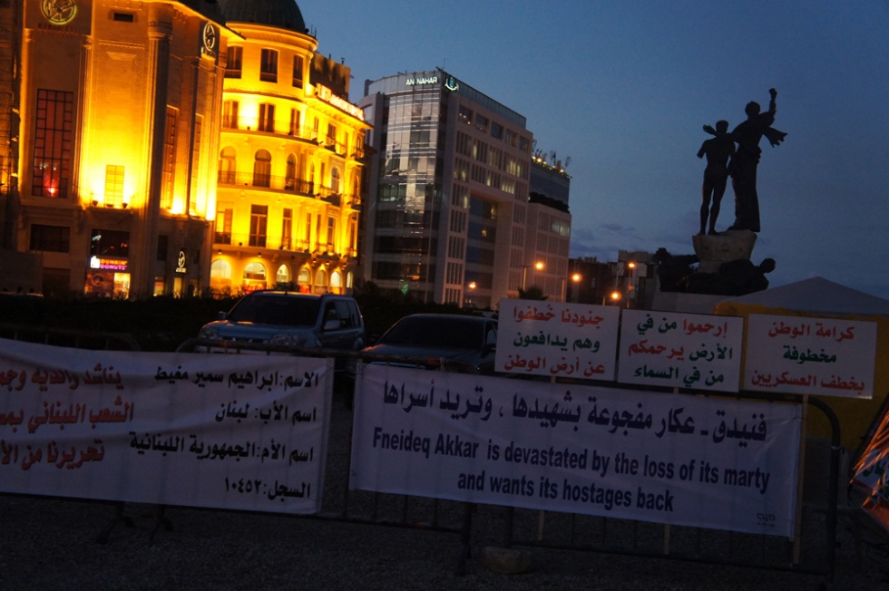 “We came to Martyr’s Square to express our discontent, because when we protest in Akkar, no-one is paying attention,” said Hussam Sayyed, the uncle of Ali Sayyed. “We want to tell the government they are not doing enough. We have martyrs, like Ali, and we want the others to be released.”