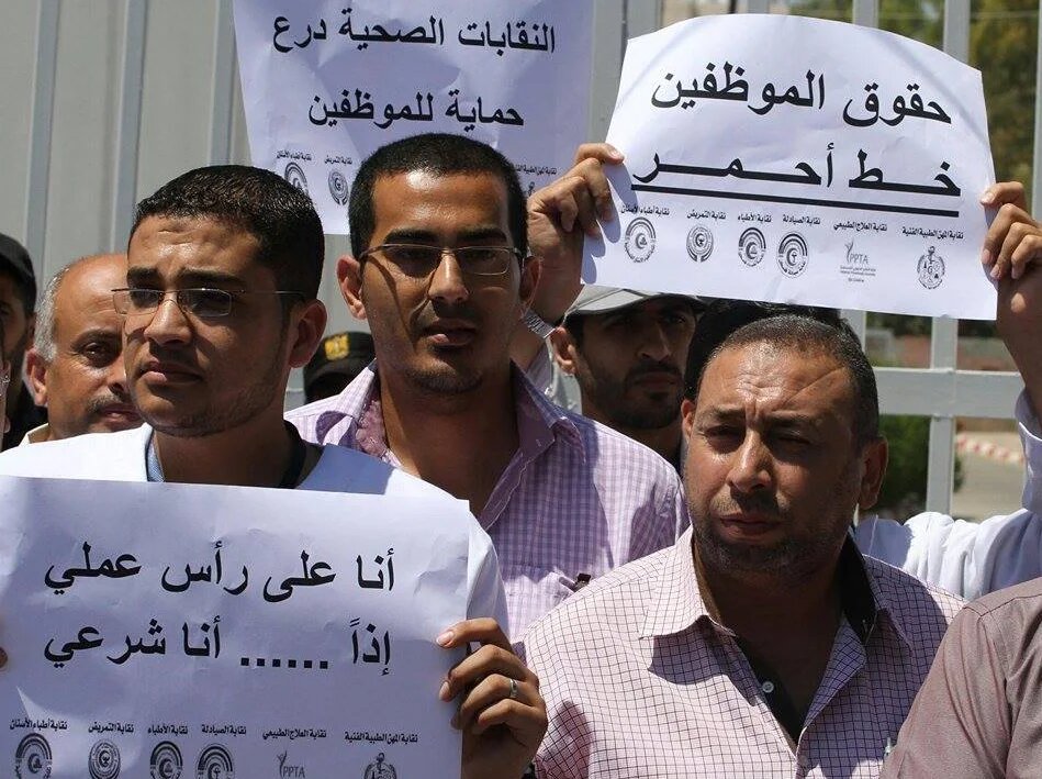 Hasan is among more than 50,000 employees in Gaza who continue to work at vital public-sector jobs without full or even regular pay. Knowing their work is necessary, and fearing they will never be paid at all if they quit, they sporadically erupt into strikes and demonstrations to protest the continuing feud between Hamas and Fatah over who runs the blockaded Strip. The most recent strike was 27 August, and the Gaza Public Employees Union called on the unity government (the Hamas-Fatah alliance announced last year, but in name only) to pay the full salaries of all employees, halt salary cuts and provide transportation to the workplace.