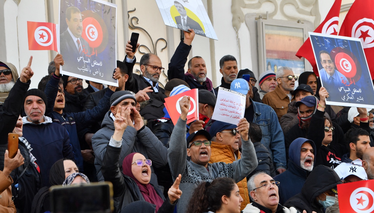 There are mounting signs of discontent. On Sunday, demonstrators defied an official protest ban to rally against Saied in the capital. They broke through a police barrier to reach the city centre, holding up national flags and posters of recently arrested figures.