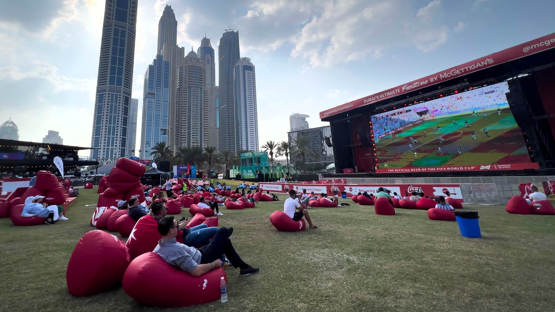 Hotels and restaurants have erected giant screens for fans to watch the matches. Outside Dubai Mall, sportswear giant Adidas has setup an interactive World Cup fan experience in the shadows of the Burj Khalifa.