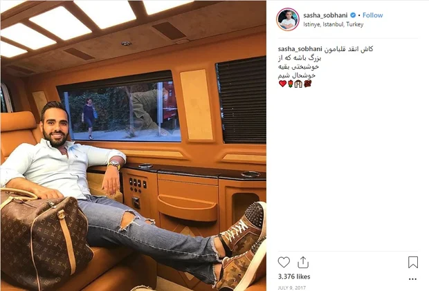 Sobhani, the son of the former ambassador, is one of these. The 31-year-old, whose real name is Mohammad-Reza, posts photos of himself driving expensive cars, passing time on yachts and partying in tuxedos, all of which have made him one of the most hated faces among ordinary Iranians.