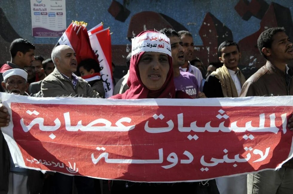 In the city of Ibb, which the militia have held since last year, protesters chanted: "Houthi, Iran: Yemen is not Lebanon!", in reference to predominantly Shiite Iran's alleged support for the militia.