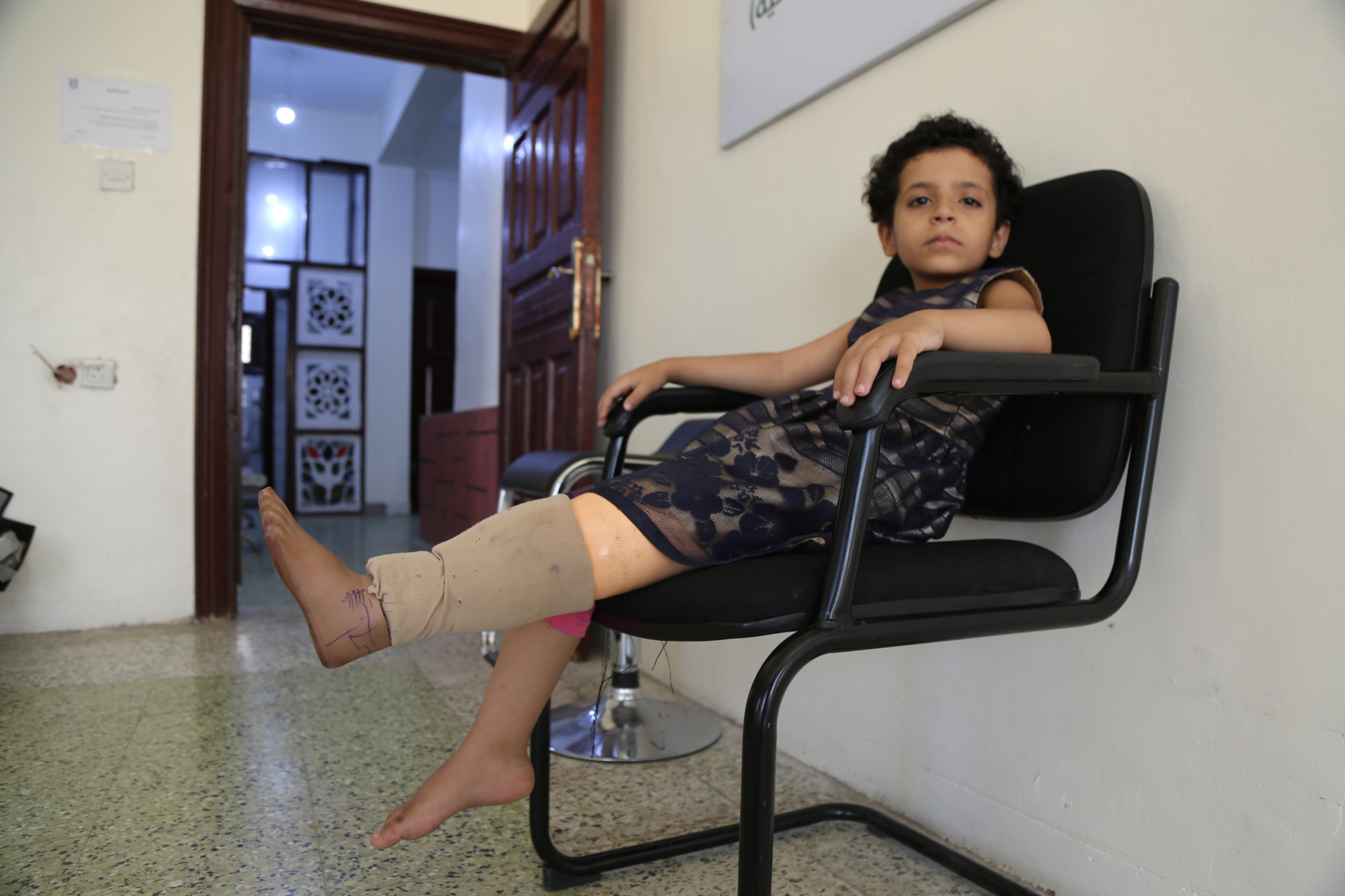 She says she is sad about her daughter but also about the fact that many children in Yemen face the same situation and need to adapt to a new life without a leg.