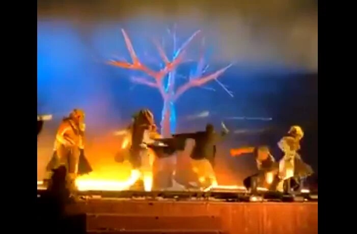 A man wielding a knife can be seen in this video grab, moments after he stabbed a performer (MEE)
