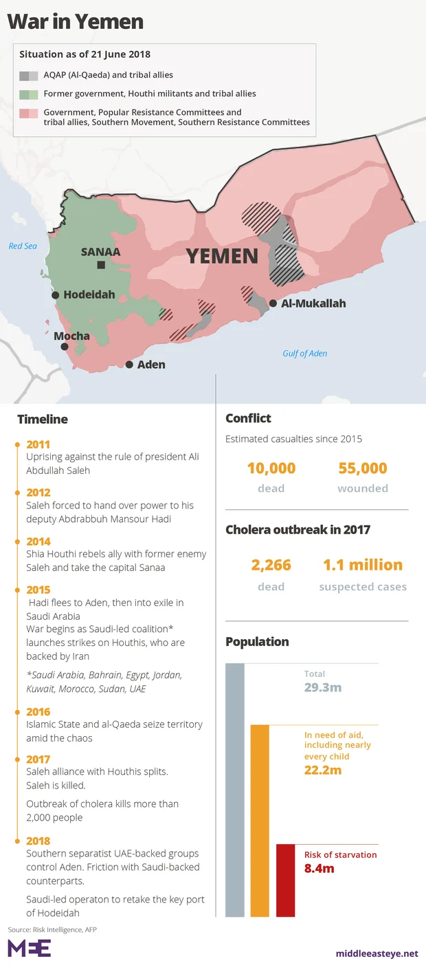 Yemen – the Arab world’s poorest country – has been beset by calamities since a Saudi-led coalition began battling Houthi rebels in 2015 on behalf of the internationally recognised government.