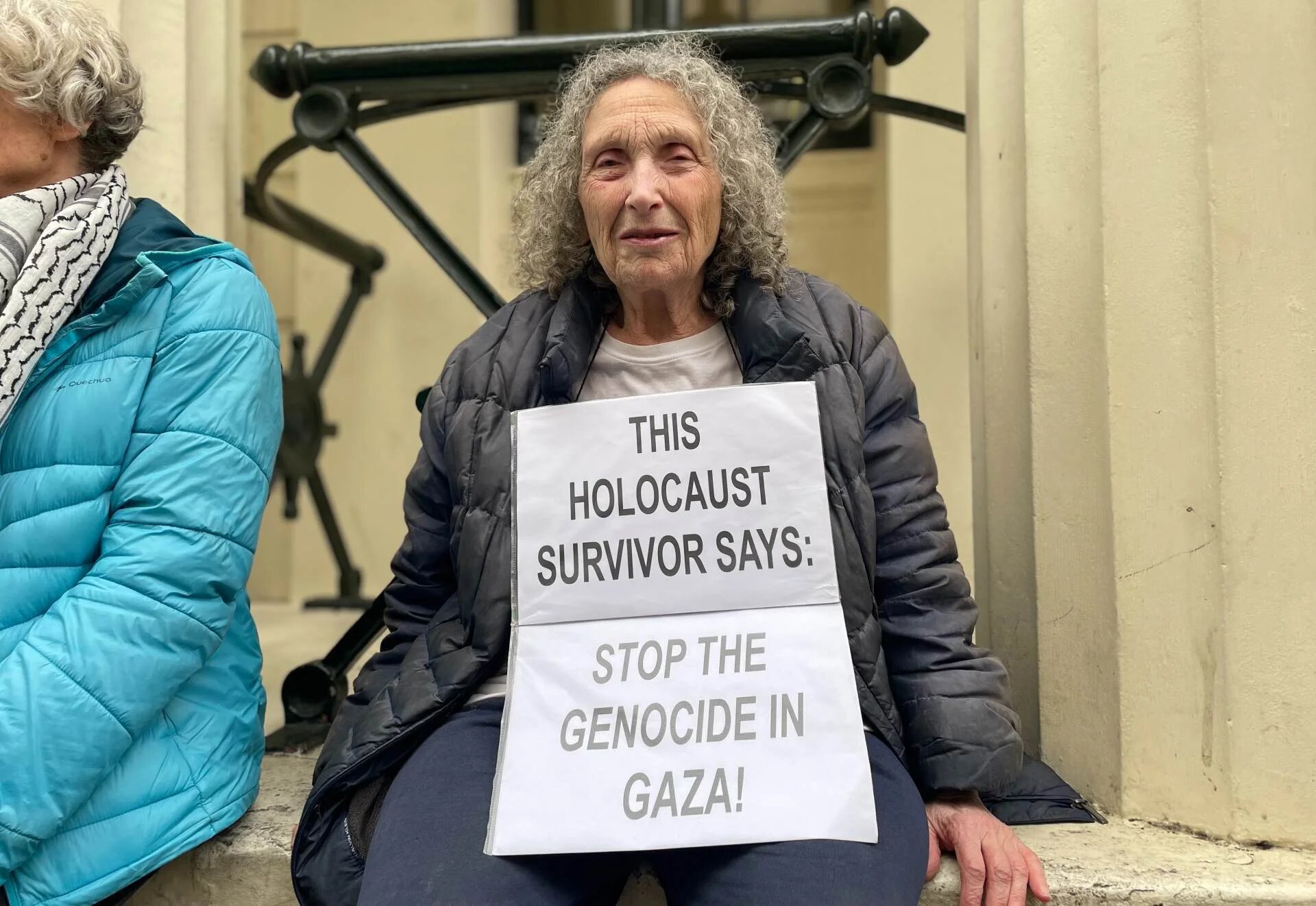 Supporters cheer Holocaust survivor questioned by police over Gaza protest