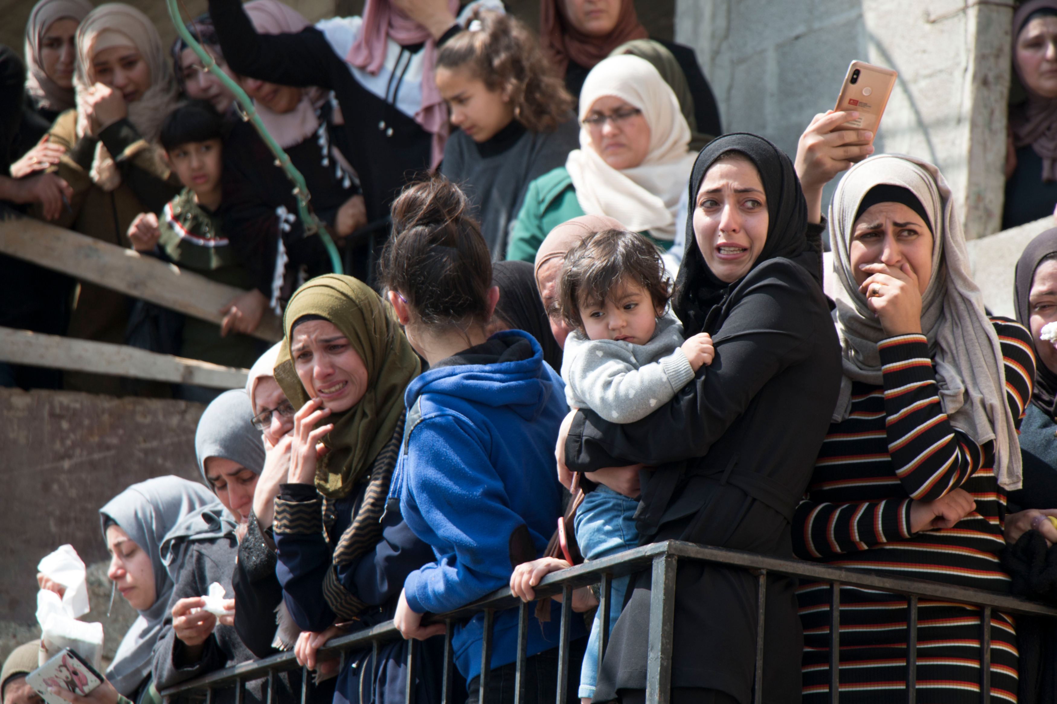 Ahmad Manasrah's mother, second from right, mourns during her son's funeral on Thursday (MEE/Akram al-Waara)