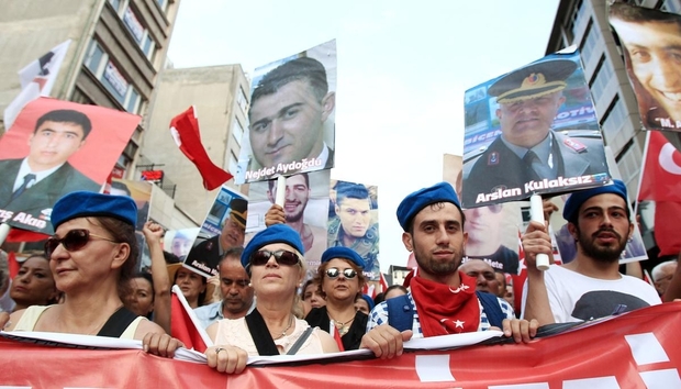 Photo : plusieurs centaines de personnes participent à un rassemblement de protestation à Istanbul, le 7 septembre 2015, contre l’attentat à la bombe perpétré le 6 septembre 2015 par le PKK, causant la mort de 16 soldats et en blessant 6 autres, à Dağlıca (province de Hakkari), dans le sud-est du pays (AA).