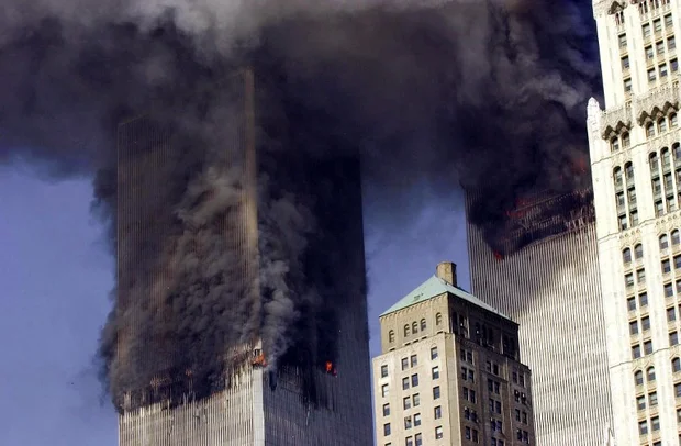 The twin towers of the World Trade Center burn on 11 September 2001 (AFP)