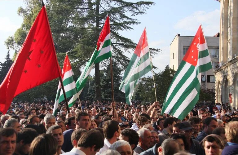 Image: Opposition protesters rally in front of the presidential office in Sukhumi, the capital of the Georgia's breakaway republic of Abkhazia, in May 2014 the day after demonstrators stormed the presidency in what the leader of Abkhazia called a coup attempt (AFP)