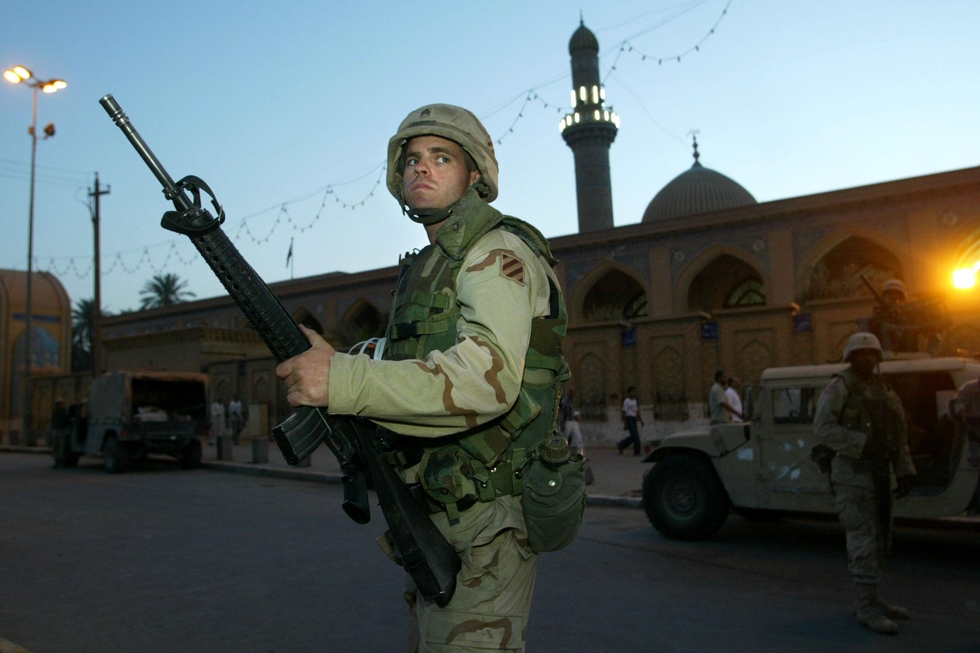Photo: A US Army soldier stands guard in front of the Abu Hanifa mosque in Baghdad in June 2003 (AFP)
