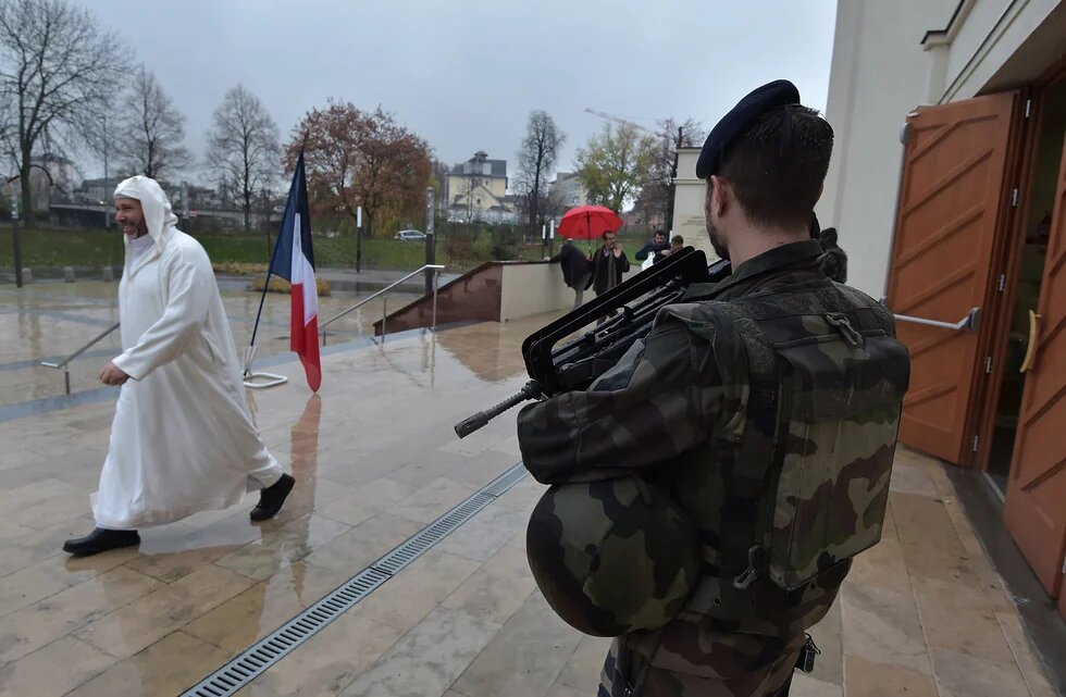 Photo: A French soldier stands guard in front of the Great Mosque during the Friday prayer on 20 November, 2015 in Strasbourg, eastern France (AFP).