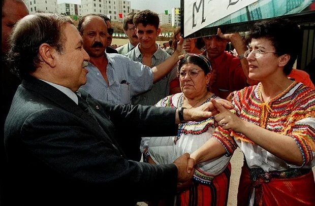 Photo: Since his first election campaign, Abdelaziz Bouteflika, the president, is seen in Tizi Ouzou, with his sister (on the right) and the mother of Lounès Matoub, a singer who was assassinated on 25 June 1999. This operation of reconciliation around the “Matoub symbol" failed, and, in 2001, more than 100 demonstrators were shot dead during the Black spring (AFP).