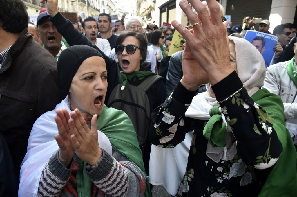 Algerian women march in an anti-government protest in Algiers on 14 February (AFP)
