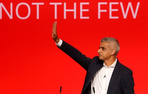 The mayor of London Sadiq Khan delivers a speech at the Labour Party Conference in Brighton, Britain, September 25 2017 (Reuters)
