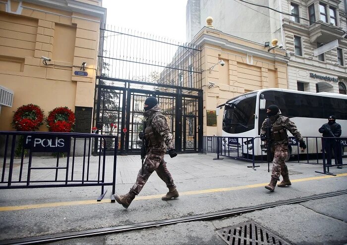 Photo: Members of police special forces patrol outside the Russian consulate in Istanbul on 20 December 2016 (AFP)