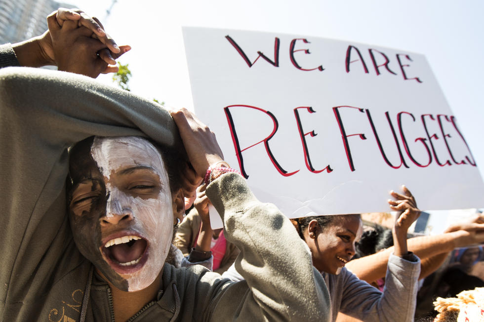 Photo: African asylum seekers, who entered Israel illegally via Egypt, hold up signs in English as they walk towards the Israeli Interior Ministry during a protest in the Mediterranean coastal city of Tel Aviv on February 11, 2014. (AFP)