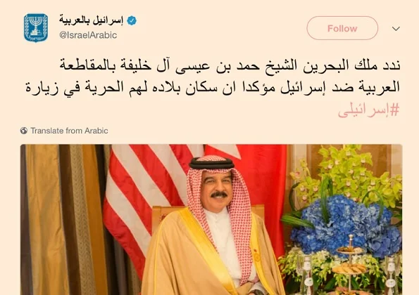 The Israeli foreign ministry was so excited by this news that it broke protocol and trumpeted the story on its Arabic language Twitter feed:
