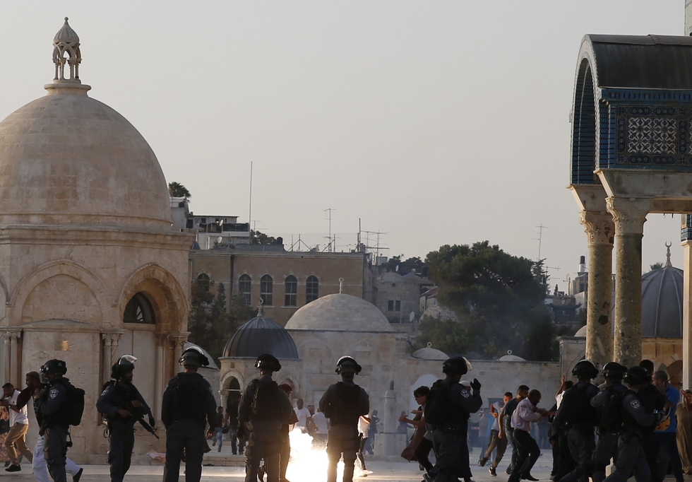 Photo: Israeli security forces fire tear-gas to disperse Palestinians after clashes broke out inside Al-Aqsa mosque's compound in Jerusalem's Old City on July 272017 (AFP)