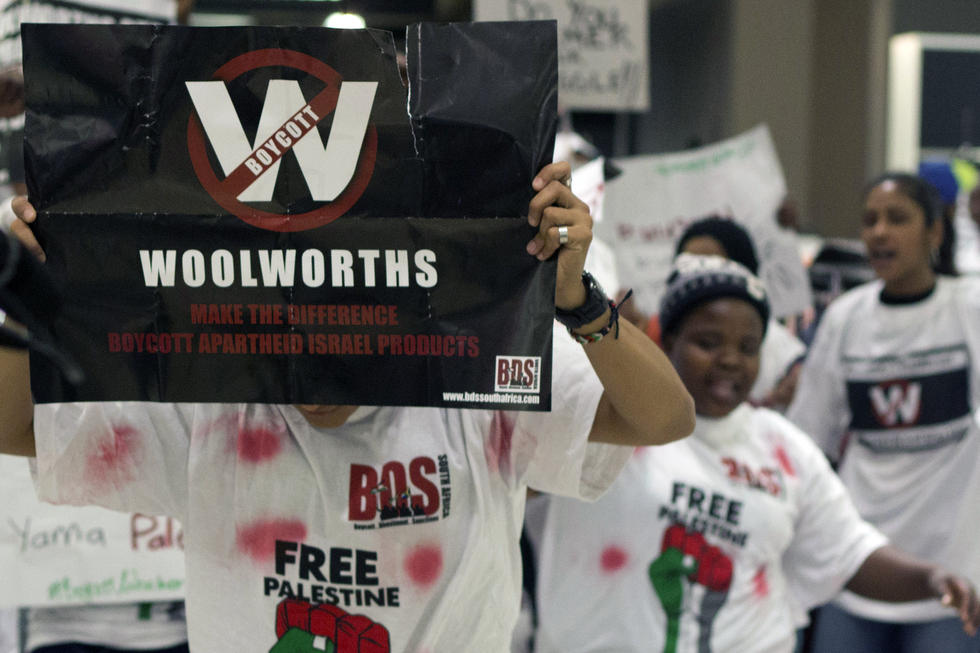Photo: A BDS action targeting the South African retailer Woolworths 24 October, 2014 (AFP)